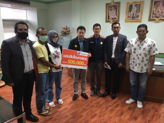 นายไพบูลย์ โอมาก รองผู้ว่าราชการจังหวัดตรัง เป็นประธานมอบค่าสินไหมทดแทนกรณีอุบัติเหตุรถบรรทุกพ่วงชนรถยนต์ ให้แก่ทายาท เป็นเงิน 500,000.-บาท และกล่าวแสดงความเสียใจพร้อมให้กำลังใจแก่ครอบครัวผู้เสียชีวิตและผู้บาดเจ็บจากอุบัติเหตุในครั้งนี้ จากกรณีเมื่อวันที่ 22 พ.ย.2563 เวลาประมาณ 18.56 น. รถยนต์บรรทุกพ่วง 18 ล้อ หัวลากหมายเลขทะเบียน 80-4861 พัทลุง พ่วงท้ายหมายเลขทะเบียน 80-5262 พัทลุง เฉี่ยวชนรถยนต์กระบะหมายเลขทะเบียน บพ 8391 ตรัง บริเวณถนนเพชรเกษม-ตรัง มุ่งหน้าไปตรัง ต.ชุมพล อ.ศรีนครินทร์ จ.พัทลุง เป็นเหตุให้มีผู้เสียชีวิต จำนวน 1 ราย บาดเจ็บ 17 ราย สำนักงานคณะกรรมการกำกับและส่งเสริมการประกอบธุรกิจประกันภัย (คปภ.) จังหวัดตรัง ได้รับการประสานงานจาก สำนักงานคณะกรรมการกำกับและส่งเสริมการประกอบธุรกิจประกันภัย (คปภ.) จังหวัดพัทลุง ว่า มีผู้เสียชีวิตและบาดเจ็บส่วนใหญ่เป็นคนอยู่ในพื้นที่จังหวัดตรัง จากการตรวจสอบการจัดทำประกันภัยรถยนต์คันเกิดอุบัติเหตุพบว่า ได้จัดทำประกันภัยภาคบังคับ (พ.ร.บ.) ไว้กับบริษัทธนชาติประกันภัย จำกัด (มหาชน) ส่วนรถยนต์บรรทุกพ่วงมีประกันภัยภาคบังคับ (พ.ร.บ.) ไว้กับบริษัท วิริยะประกันภัย จำกัด (มหาชน) และประกันภัยภาคสมัครประเภท 3 ทั้งนี้จากการติดตามและทำงานบูรณาการร่วมกับภาคธุรกิจประกันภัยในเบื้องต้น บริษัทธนชาติประกันภัยผู้รับประกันภัยรถยนต์คัดเกิดเหตุ ได้ตกลงจ่ายค่าสินไหมทดแทนตามสัญญาประกันภัยให้แก่ทายาทผู้ประสบภัยจำนวน 1 ราย เป็นเงิน 500,000 บาท และรับรองค่ารักษาพยาบาลของผู้บาดเจ็บทั้งหมดในรถยนต์คันเกิดเหตุ