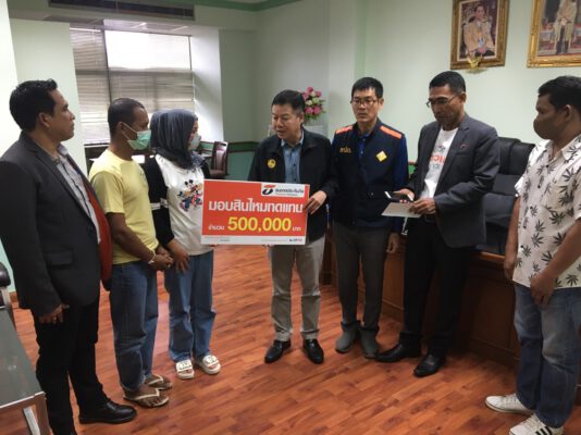 คปภ.ตรัง จ่ายค่าสินไหมทดแทนกรณีอุบัติเหตุรถบรรทุกพ่วงชนรถยนต์