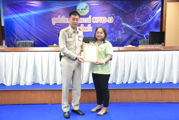 สำนักงานสาธารณสุขจังหวัดตรัง มอบเกียรติบัตร การดำเนินงานส่งเสริมสุขภาพวัยทำงานในสถานประกอบการระดับดีและดีมาก ประจำปี 2563