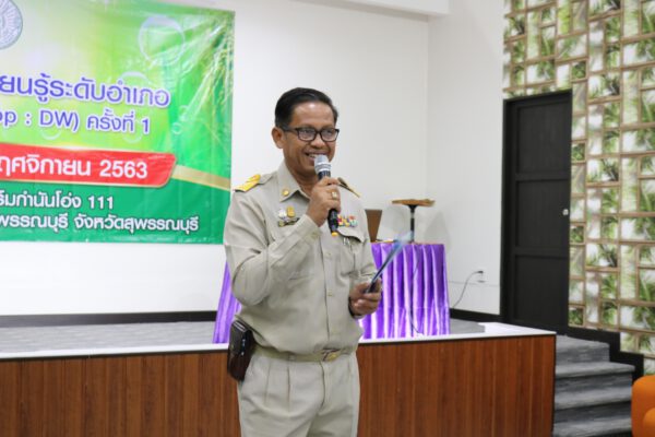 เกษตรจังหวัดสุพรรณบุรี กล่าวว่า การจัดกิจกรรมเวทีแลกเปลี่ยนเรียนรู้ระดับอำเภอ (District Workshop : DW) เป็นการดำเนินงานตามระบบส่งเสริมการเกษตร (T&V System) ซึ่งในครั้งนี้เป็นการถ่ายทอดนโยบายที่สำคัญของกระทรวงเกษตรและสหกรณ์ นโยบายของกรมส่งเสริมการเกษตร กรอบแนวคิดการดำเนินงานส่งเสริมการเกษตร ประจำปีงบประมาณ 2564 การชี้แจงงบประมาณและแนวทางการดำเนินงานตามโครงการที่สำนักงานเกษตรจังหวัดสุพรรณบุรีได้รับการจัดสรร ให้แก่เจ้าหน้าที่ส่งเสริมการเกษตรทุกระดับ เพื่อสร้างความรู้ความเข้าใจในการปฏิบัติงาน อีกทั้งยังเป็นโอกาสให้เจ้าหน้าที่ได้แลกเปลี่ยนเรียนรู้ และร่วมกันพัฒนาการดำเนินงาน ให้มีความพร้อมสำหรับการให้บริการ ช่วยเหลือดูแล และสร้างรายได้ให้แก่เกษตรกรในพื้นที่จังหวัดสุพรรณบุรีได้อย่างมีประสิทธิภาพ