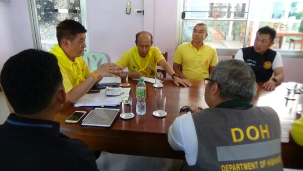 ที่จวนผู้ว่าราชการจังหวัดตรัง นายขจรศักดิ์ เจริญโสภา ผู้ว่าราชการจังหวัดตรัง เรียกประชุมเจ้าหน้าที่จากสักงานก่อสร้างชลประทานขนาดใหญ่ที่ 11กรมชลประทาน เจ้าหน้าที่สำนักงานชลประทานตรัง ผู้อำนวยการแขวงทางหลวงตรัง นายอำเอเมืองตรัง ผู้บังคับการตำรวจภูธรจังหวัดตรัง กองอำนวยการรักษาความมั่นคงภายในจังหวัดตรัง สำนักงานป้องกันและบรรเทาสาธารณภัยจังหวัดตรัง หลังจากที่มวลน้ำจากอำเภอทุ่งสง จังหวัดนครศรีธรรมราชไหลหลากมาจังหวัดตรัง โดยผ่านอำเภอรัษฎา อำเภอห้วยยอด และอำเภอเมืองตรัง ทั้งนี้จังหวัดตรัง ได้ติดตามสถานการณ์น้ำในพื้นที่จังหวัดตรังอย่างต่อเนื่อง ในขณะนี้ปริมาณน้ำที่ไหลมาจากอำเภอทุ่งสง จังหวัดนครศรีธรรมราช ลงสู่แม่น้ำตรังได้เพิ่มจำนวนขึ้นอย่างต่อเนื่องและล้นคันดินเข้าท่วมในพื้นที่ลุ่มต่ำบางส่วนแล้ว ดังนั้น จังหวัดตรัง จึงได้เร่งประชาสัมพันธ์ให้ประชาชนในพื้นที่ ตำบลนาโต๊ะหมิง ตำบลบางรัก ตำบลนาตาล่วง อำเภอเมืองตรัง ขนของขึ้นสู่ที่สูง เพื่อความปลอดภัย
