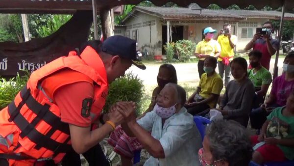 นายขจรศักดิ์ เจริญโสภา ผู้ว่าราชการจังหวัดตรัง พร้อมด้วยนางละมัย เจริญโสภา นายกเหล่ากาชาดจังหวัดตรัง นายอาชวงศ์ สาริพัฒน์ ป้องกันและบรรเทาสาธารภัยจังหวัดตรัง นายสำคัญ อรทัย นายอำเภอห้วยอด นายสนิท ชูเมือง นายกองค์การบริหารส่วนตำบลบางดี อำเอห้วยยอด จังหวัดตรัง ลงเรือเพื่อไปแจกถุงยังชีพให้กับชาวบ้านที่หมู่ที่ 3 ตำบลบางดี อำเภอห้วยยอด จังหวัดตรัง โดยแจกถุงยังชีพให้กับชาวบ้าน จำนวน 160 ชุด ในขณะชาวบ้านที่มีอายุ 80 กว่าปี ได้สวมกอดผู้ว่าราชการจังหวัดตรังและนายกเหล่ากาชาดจังหวัดตรัง ที่นั่งเรือเข้าไปมอบถุงยังชีพ เนื่องจากมีความซาบซึ้งใจที่ทางราชการไม่ได้ทอดทิ้งประชาชน จากนั้นคณะได้เดินทางไปที่วัดบางดี มอบถุงยังชีพให้กับชาวบ้านที่เดือดร้อนจากการถูกน้ำท่วม จำนวน 120 ครัวเรือน
