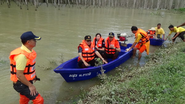 ผู้ว่าราชการจังหวัดตรัง นำเหล่ากาชาดจังหวัดตรัง ฝ่ายปกครองอำเภอห้วยยอด และสำนักงานป้องกันและบรรเทาสาธารณภัยจังหวัดตรัง ลงเรือไปมอบถุงยังชีพให้กับประชาชนที่เดือดร้อนจากกาถูกน้ำท่วมขัง ไม่สามารถออกมาซื้ออาหารได้ ทั้งนี้มีการประกาศให้ 6ของจังหวัดตรัง เป็นพื้นที่ประสบภัยพิบัติ และมีผู้เสียชีวิต 1 คน