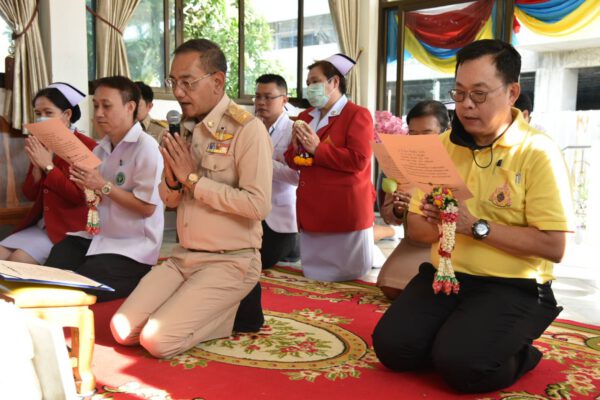 โดยมี นพ.ศุภฤทธิ์ เฮงคราวิทย์ ผอ.รพ.สมเด็จพระสังฆราชองค์ที่ 17 พร้อมด้วยหัวหน้าส่วนราชการ ทหาร ตำรวจ กำนัน ผู้ใหญ่บ้าน เจ้าหน้าที่ฝ่ายปกครอง องค์กรส่วนท้องถิ่น แพทย์ พยาบาล และพลังมวลชน เข้าร่วมพิธีเป็นจำรนวนมาก