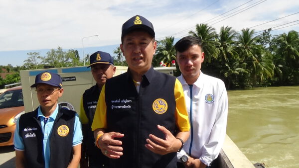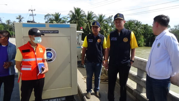 นายขจรศักดิ์ เจริญโสภา ผู้ว่าราชการจังหวัดตรัง ลงตรวจปริมาณน้ำตรัง ที่บริเวณสะพานท่าแก้มดำ ตำบลควนธานี อำเภอกันตัง จังหวัดตรัง พร้อมด้วยปลัดจังหวัดตรัง นายอำเภอกันตัง ป้องกันและบรรเทาสาธารณภัยจังหวัดตรัง ทั้งนี้จากการตรวจสอบพบว่าปริมาณน้ำได้ลดระดับลงอย่างต่อเนื่อง ขณะนี้ระดับน้ำอยู่ต่ำกว่าตลิ่ง 1 เมตรกว่าๆ เป็นผลมาจากการติดตั้งเครื่องสูบน้ำและเครื่องผลักดันน้ำ ที่ติดตั้งโดยกรมชลประทาน ที่สูบน้ำวันละ 24 ชั่วโมง จนสามารถระบายน้ำออกได้อย่างรวดเร็ว ลดความสูญเสียได้เป็นอย่างมาก