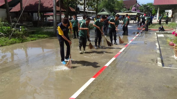 ทั้งนี้นายขจรศักดิ์ เจริญโสภา ผู้ว่าราชการจังหวัดตรัง กล่าวว่า จากการที่เร่งสูบน้ำออกและติดตั้งเครื่องผลักดันน้ำ ทำให้ปัญหาน้ำท่วมได้ละระดับลงอย่างรวดเร็ว ในขณะนี้น้ำในแม่น้ำตรังที่ไหลผ่านนั้นมีปริมาณลดลง แต่ประชาชนที่ยังได้รับผลกระทบคือประชาชนที่อาศัยอยู่ริมฝั่งแม่น้ำตรัง ในพื้นที่อำเภอห้วยยอด(บางส่วน) อำเภอเมืองตรัง(บางส่วน) อำเภอกันตัง(บางส่วน)อำเภอกันตัง(บางส่วน) โดยในขณะนี้ได้มีการติดตั้งเครื่องสูบน้ำออกจากพื้นที่ลุ่มที่มีบ้านเรือนประชาชนอาศัยอยู่ เนื่องจากน้ำในคลองลัดผันน้ำแม่น้ำตรังได้ลดระดับต่ำกว่าตลิ่งสามารถสูบน้ำออกได้แล้ว โดยคาดการว่า 1-2 วันนี้ อาจจะเข้าสู่ภาวะปกติ ในขณะนี้ชาวบ้านที่ขนของมากางเต๊นท์อยู่ก็ได้ทยอยกันเก็บของเข้ากลับเข้าไปอยู่ในบ้านแล้ว ซึ่งจังหวัดตรังเกิดน้ำท่วมใน 6 อำเภอ คืออำเภอนาโยง อำเภอรัษฎา อำเภอห้วยยอด อำเภอวังวิเศษ อำเภอเมืองตรัง และอำเภอกันตัง ประชาชนได้รับความเดือดร้อนกว่า 7 พันครัวเรือน มีผู้เสียชีวิต 2 ราย ส่วนความเสียหายทางพืชผลการเกษตร ประมง และปศุสัตว์ ยังอยู่ในระหว่างการสำรวจ หลังจากสำรวจปริมาณน้ำแล้ว ไดเดดินทางไปที่วัดประสิทธิชัย อำเภอเมืองตรัง เพื่อถวายน้ำดื่มให้กับเจ้าอาวาสวัดประสิทธิชัย ที่ได้รับผลกระทบจากน้ำท่วมเช่นกัน ในขณะที่เจ้าหน้าที่จากสำนักงานทรัพยากรธรรมชาติและสิ่งแวดล้อม เขต 12 จังหวัดนครศรีธรรมราช ได้มาช่วยเหลือทางวัด โดยการทำความสะอาดบริเวณวัด และทำความสะอาดโรงเรียนวัดประสิทธิชัย ที่ถูกน้ำท่วม ซึ่งจะสามารถเปิดการเรียนการสอนได้ในวันจันทร์ที่จะถึงนี้ และได้วางพวงหรีดให้กับศพของพระม่อน ที่มรณาพจากการจมน้ำอีกด้วย
