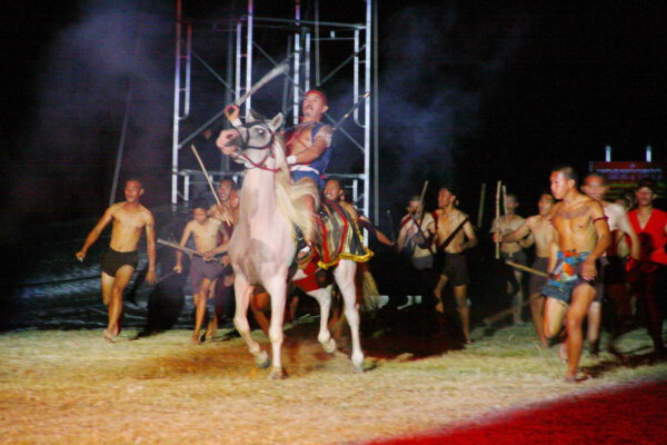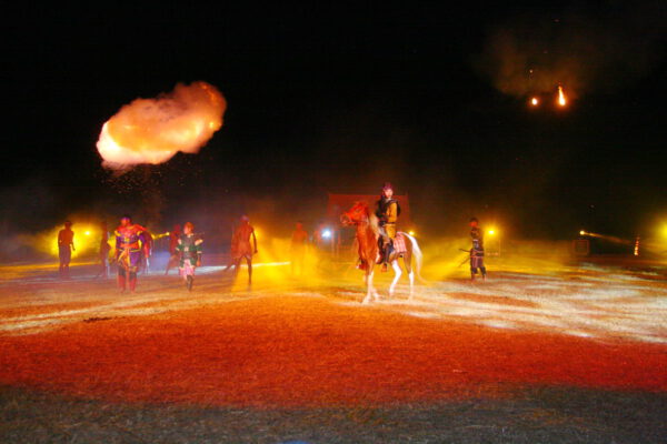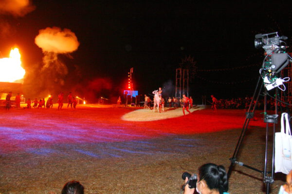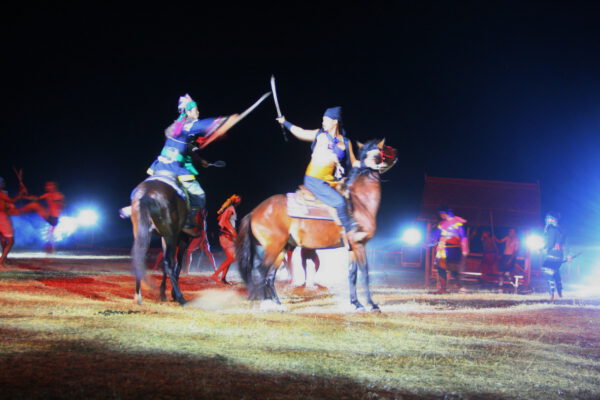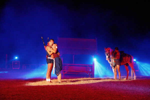 จากนั้น ได้ทำการแสดง แสง สี เสียง บทละครอิงประวัติศาสตร์ สี่ร้อยนักรบแห่งแขวงเมืองวิเศษชัยชาญ ตำนานขุนรองปลัดชู โดยใช้นักแสดงเป็นทีมงานกองโจรพระองค์ดำ ลูกหลานแขวงเมืองวิเศษชัยชาญ จ.อ่างทอง และทีมนักแสดงจาก จ.ประจวบคีรีขันธ์ ประกอบด้วย ทหารอากาศกองบิน 5 นักศึกษาจากวิทยาลัยเทคนิคประจวบฯและวิทยาลัยเทคโนโลยีประจวบฯ นักเรียนจากโรงเรียนอ่าวน้อยวิทยานิคม โรงเรียนกุยบุรีวิทยา โรงเรียนบ้านคั่นกระได และโรงเรียนสามร้อยยอดวิทยา