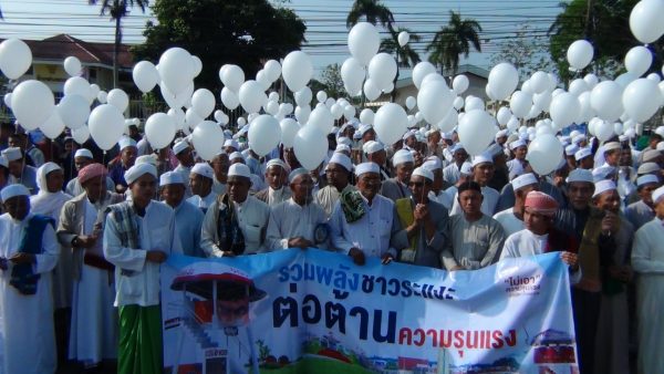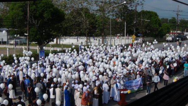 ผู้นำศาสนาอิสลามของพื้นที่ 7 ตำบล 61 หมู่บ้าน ใน อ.ระแงะ จำนวนกว่า 500 คน ร่วม “ละหมาดฮายัต” ครบรอบ 1 ปี เหตุคนร้ายนั่งท้ายกระบะ สวมหมวกบังแดด กราดยิงตำรวจ ที่หน้าสภ.ระแงะ จ.นราธิวาส เสียชีวิต 1 นาย บาดเจ็บ3นาย ขณะกำลังเคารพธงชาติ เมื่อวันที่ 30 มีนาคม2560 พร้อมปล่อยลูกโป่งสัญลักษณ์ขอสันติภาพสู่ชายแดนใต้