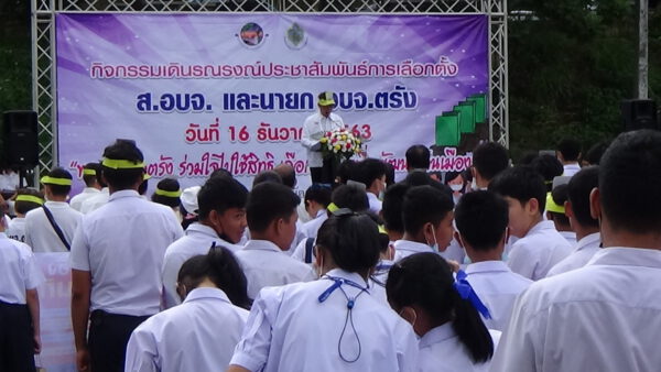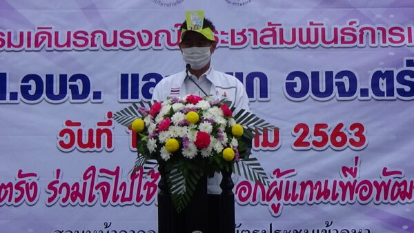ณ บริเวณลานหน้าพระบรมราชานุสาวรีย์ รัชกาลที่ 5 อำเภอเมืองตรัง จังหวัดตรัง นายขจรศักดิ์ เจริญโสภา ผู้ว่าราชการจังหวัดตรัง เป็นประธานในพิธีเปิดกิจกรรมเดินรณรงค์ประชาสัมพันธ์การเลือกตั้งสมาชิกสภาองค์การบริหารส่วนจังหวัดตรังและนายกองค์การบริหารส่วนจังหวัดตรัง ด้วยคณะรัฐมนตรีได้มีมติเห็นสมควรให้มีการเลือกตั้งสมาชิกสภาท้องถิ่นและผู้บริหารท้องถิ่นขององค์การบริหารส่วนจังหวัด คณะกรรมการการเลือกตั้งจึงได้ออกประกาศกำหนดให้มีการเลือกตั้งสมาชิกสภาองค์การบริหารส่วนจังหวัดและนายกองค์การบริหารส่วนจังหวัดพร้อมกันทั่วประเทศ ผู้อำนวยการการเลือกตั้งประจำองค์การบริหารส่วนจังหวัดตรัง ประกาศให้วันอาทิตย์ที่ 20 ธันวาคม 2563 เป็นวันเลือกตั้งสมาชิกสภาองค์การบริหาร ส่วนจังหวัดตรังและนายกองค์การบริหารส่วนจังหวัดตรัง ระหว่างเวลา 08.00 น. ถึง 17.00 น. ศูนย์อำนวยการการเลือกตั้งประจำองค์การบริหารส่วนจังหวัดตรัง และสำนักงานคณะกรรมการการเลือกตั้งประจำจังหวัดตรัง จึงได้กำหนดจัดกิจกรรมเดินรณรงค์ประชาสัมพันธ์การเลือกตั้งสมาชิกสภาองค์การบริหารส่วนจังหวัดตรังและนายกองค์การบริหารส่วนจังหวัดตรัง ช่วงโค้งสุดท้ายก่อนการเลือกตั้ง เพื่อเป็นสื่อบุคคลในการสร้างการรับรู้และเผยแพร่ประชาสัมพันธ์ พร้อมทั้งเชิญชวนให้ผู้มีสิทธิเลือกตั้งออกมาใช้สิทธิเลือกตั้งสมาชิกสภาองค์การบริหารส่วนจังหวัดตรังและนายกองค์การบริหารส่วนจังหวัดตรัง ไม่น้อยกว่าร้อยละ 80 รวมทั้งให้ประชาชนเข้ามามีส่วนร่วมทางการเมืองในการจัดกิจกรรมครั้งนี้ ประกอบด้วย หัวหน้าส่วนราชการ คณะผู้บริหาร ครู นักเรียนโรงเรียนสภาราชินีและโรงเรียนวัดควนวิเศษ เครือข่ายศูนย์ส่งเสริมพัฒนาประชาธิปไตย และลูกเสืออาสา กกต. เพื่อประชาธิปไตย จำนวน 300 คน