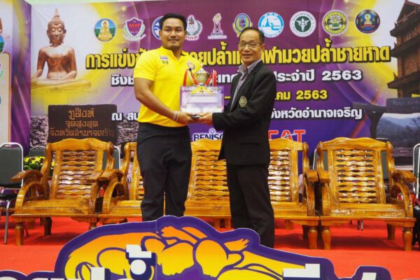 โดย นายทวีป บุตรโพธิ์ ผู้ว่าราชการจังหวัดอำนาจเจริญ และผู้ช่วยศาสตราจารย์กิตติพศ สุฉันทบุตร นายกสมาคมกีฬามวยปล้ำแห่งประเทศไทย ให้เกียรติมอบถ้วยรางวัลดังกล่าว