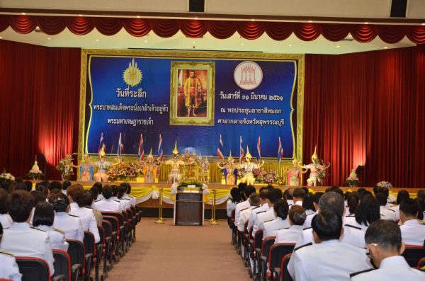 ที่หอประชุมอาชาสีหมอก ศาลากลางจังหวัดสุพรรณบุรี นายนิมิต วันไชยธนวงศ์ ผู้ว่าราชการจังหวัดสุพรรณบุรี นำส่วนราชการนายกเหล่ากาชาด ผู้พิพากษาหัวหน้าศาล อัยการจังหวัด รองผู้ว่าราชการจังหวัด ปลัดจังหวัด หัวหน้าส่วนราชการ ข้าราชการ พ่อค้า ประชาชน องค์กรปกครองส่วนท้องถิ่น และนิสิต นักศึกษาในจังหวัดสุพรรณบุรี ประกอบพิธีรัฐพิธีวางพานพุ่มดอกไม้สด เนื่องในวันระลึก พระบาทสมเด็จพระนั่งเกล้าเจ้าอยู่หัว พระมหาเจษฎาราชเจ้า รัชกาลที่ 3 แห่งพระบรมราชจักรีวงศ์