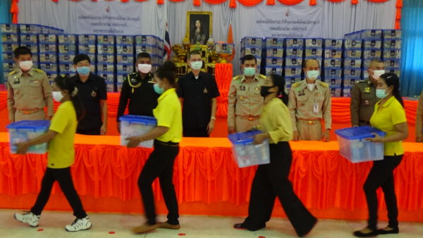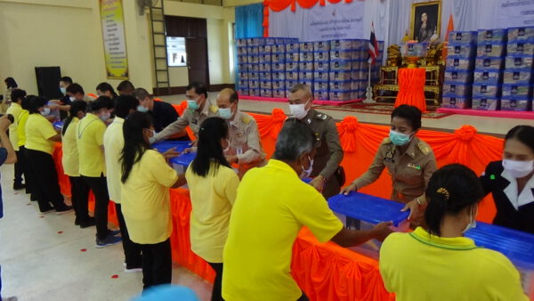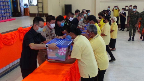 รองประธานสถาบันวิจัยจุฬาภรณ์ เชิญสิ่งของพระราชทานจากศาสตราจารย์ ดร.สมเด็จพระเจ้าน้องนางเธอ เจ้าฟ้าจุฬาภรณวลัยลักษณ์ อัครราชกุมารี กรมพระศรีสวางควัฒน วรขัตติยราชนารี พระราชทานมอบแก่ผู้ประสบอุทกภัยในพื้นที่จังหวัดตรัง