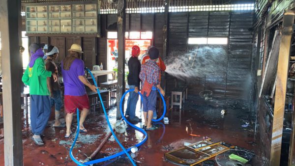 จากการสอบถามผู้อยู่ในเหตุการณ์ เล่าว่า เมื่อเวลาประมาณ 11 .20 น. ได้มีเสียงดัง ปึ้ม มาจาก ตู้สวิทช์บอร์ด ตู้ไฟ ท้ายศูนย์อาหาร จากนั้นได้เกิดไฟลุกไหม้ จึงได้โทรแจ้ง จนท. และเรียกคนมาช่วยกันนำถังไปตักน้ำมาดับเพลิง แต่ไม่เป็นผล เพลิงลุกไหม้ลามอย่างรวดเร็ว ไหม้เสียหายวอดทั้งศูนย์อาหาร