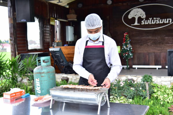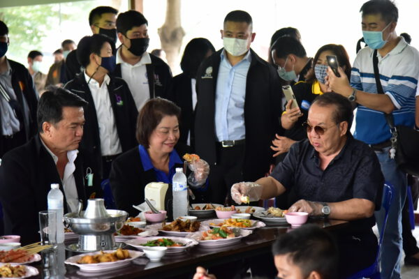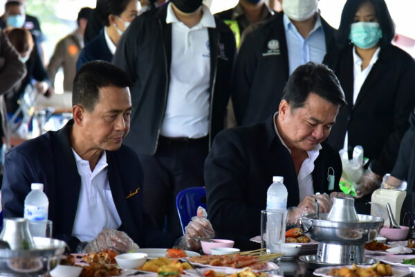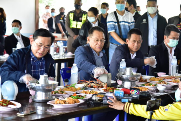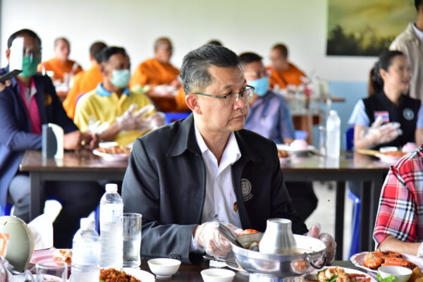พร้อมกันนี้ รัฐมนตรีประจำสำนักนายกรัฐมนตรีได้เชิญชวนให้พุทธศาสนิกชน ถวายอาหารอาหารทะเลปรุงสุกให้กับพระสงฆ์ เพื่อเป็นการช่วยผู้ประกอบการ โอกาสนี้ ได้นิมนต์ พระเทพศาสนาภิบาล รองเจ้าคณะจังหวัดนครปฐม เจ้าอาวาสวัดไร่ขิง พระอารามหลวง ฉันเพลอาหารทะเล ที่ร้านร่มไม้ริมนา เพื่อสร้างความเชื่อมั่นว่าอาหารทะเลปลอดภัยแน่นอน