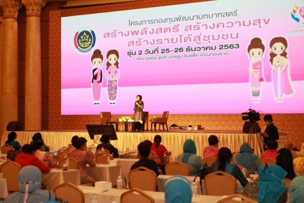 26 ธันวาคม 2563 เวลา 09.00 น. ดร.วันดี กุญชรยาคง จุลเจริญ ประธานสภาสตรีแห่งชาติในพระบรมราชินูปถัมภ์และประธานชมรมแม่บ้านพัฒนาชุมชน บรรยายพิเศษหัวข้อ “การสร้างมูลค่าเพิ่มกองทุนพัฒนาบทบาทสตรีและการบริหารจัดการหนี้” ในโครงการกองทุนพัฒนาบทบาทสตรี สร้างพลัง สร้างความสุข สร้างรายได้สู่ชุมชน โดยมีนายสุทธิพงษ์ จุลเจริญ อธิบดีกรมการพัฒนาชุมชน นางทรงลักษณ์ วรภัย ผู้ตรวจราชการกรม ปฏิบัติหน้าที่ผู้อำนวยการสำนักงานกองทุนพัฒนาบทบาทสตรี พร้อมด้วย ประธานคณะกรรมการพัฒนาสตรีจังหวัด หัวหน้าคณะทำงานขับเคลื่อนกองทุนพัฒนาบทบาทสตรี ระดับจังหวัด/ตำบล/เทศบาล และสมาชิกกองทุนพัฒนาบทบาทสตรีจาก ภาคกลาง และภาคใต้ จำนวน 1,000 คน โดยโครงการในครั้งนี้เป็น รุ่นที่ 2 ดำเนินการระหว่างวันที่ 22-26 ธันวาคม 2563 ณ ห้องรอยัล จูบิลี่ บอลรูม ศูนย์แสดงสินค้าและการประชุมอิมแพ็ค เมืองทองธานี อำเภอปากเกร็ด จังหวัดนนทบุรี