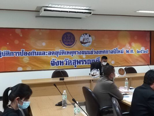 วันนี้( 3 ม.ค.64) ที่ห้องประชุมพลายแก้ว ศาลากลางจังหวัดสุพรรณบุรี นายชูชีพ พงษ์ไชย รองผู้ว่าราชการจังหวัดสุพรรณบุรี เป็นประธานการประชุมศูนย์ปฏิบัติการป้องกันและลดอุบัติเหตุทางถนนช่วงเทศกาลปีใหม่ จังหวัดสุพรรณบุรี