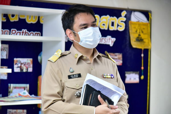 วันที่ 4 มกราคม พ.ศ. 2564 นายเชาวเนตร ยิ้มประเสริฐ ปลัดจังหวัดนครปฐม พร้อมด้วย จ่าจังหวัดนครปฐม เจ้าหน้าที่สำนักงานจังหวัดนครปฐม กอ.รมน จังหวัด คลังจังหวัด สำนักงานพัฒนาสังคมและความมั่นคงของมนุษย์จังหวัด และนายธวัชชัย นาคศรีสังข์ นักวิชาการสาธารณสุขชำนาญการพิเศษ ลงพื้นที่ตรวจความพร้อม การเตรียมสถานที่กักกันสำหรับผู้ที่เฝ้าระวังและสังเกตอาการจากไวรัสโควิด-19 สำหรับการระบาดระลอกใหม่ ณ มหาวิทยาลัยราชภัฏนครปฐม เพื่อให้ประชาชนชาวจังหวัดนครปฐม ที่อยู่ในเกณฑ์เฝ้าระวังและสังเกตอาการจากไวรัสโควิด-19 การระบาดระลอกใหม่ได้มีพื้นที่ควบคุมและหยุดการแพร่เชื้อ