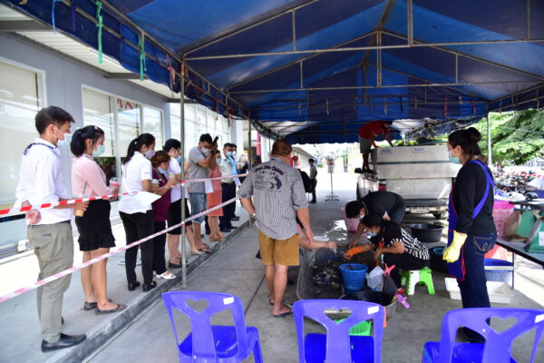 สำหรับหลักเกณฑ์ของเกษตรกรที่นำกุ้งมาจำหน่าย ต้องผ่านการตรวจหาเชื้อโควิด-19 เรียบร้อยแล้วเท่านั้น ทำให้มีเกษตรกรหลายรายที่อยู่ระหว่างรอผลการตรวจ และไม่สามารถนำกุ้งมาจำหน่ายในรอบนี้ได้ ซึ่งหลังเทศกาลปีใหม่ ทางจังหวัดได้ประสานกรมประมงขอเพิ่มจุดกระจายสินค้านอกจังหวัด ที่ตลาดไท จังหวัดปทุมธานี ซึ่งอยู่ระหว่างดำเนินการ ส่วนภายในจังหวัดจะจัดจุดบริการจำหน่ายบริเวณท่ารถบางเลน และอยู่ระหว่างประสานจุดจำหน่ายบริเวณเกษมชัยฟาร์ม เพิ่มเติม