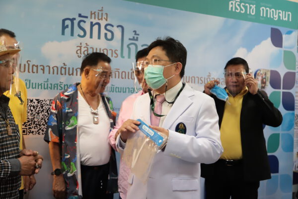 รศ.นพ.ธีระ กลลดาเรืองไกร ผู้อำนวยการศูนย์การแพทย์กาญจนาภิเษก กล่าวขอบคุณและประชาสัมพันธ์ฝากสือว่า หน้ากากช่วยป้องกันทั้งการทำงานของแพทย์และประชาชนทั่วไปได้ดี และเป็นอุปกรณ์ที่แพทย์ต้องการมาก และขอบคุณคณะของจ่ามีที่มาร่วมกันแจกอุปกรณ์ให้กับศูนย์การแพทย์กาญจนาภิเษก