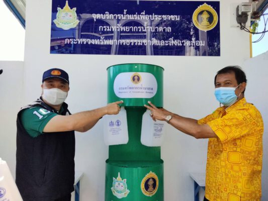 โดยนายทนงศักดิ์ ล้อชูสกุล ผอ.สำนักทรัพยากรน้ำบาดาล เขต 2 สุพรรณบุรี เป็นผู้รับผิดชอบในการประสานงาน ซึ่งจุดบริเวณหน้าโรงเรียนสุวรรณภูมิ มีการเจาะบ่อบาดาล และติดถังโซล่าเซลล์มีระบบในการกรองน้ำ ทั้งนี้ได้มีการเจาะน้ำบาดาลจำนวน 2 บ่อ โดยใช้โซล่าเซลล์เป็นแหล่งพลังงาน มีระบบเก็บน้ำ กรองน้ำดื่ม ทางโรงเรียน และชุมชนใกล้เคียงสามารถมารับน้ำที่เป็นน้ำกินและน้ำใช้ได้ โดยที่ไม่ได้เสียพลังงานที่เป็นไฟฟ้า โดยมอบหมายให้ อปท.ในพื้นที่ดูแล