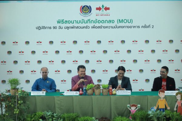 นายสุทธิพงษ์ กล่าวว่านับเป็นเรื่องโชคดีได้พันธมิตรภาคีเครือข่ายที่ดี บริษัท อีสท์ เวสท์ ซีด จำกัด ซึ่งเป็นเป็นผู้ผลิตเมล็ดพันธุ์ผักหลายร้อยชนิด ตราศรแดงมีผู้บริหารที่มีวิสัยทัศน์ไปในทางเดียวกันที่อยากเห็นประชาชนมีความสุข มีคลังอาหารเก็บไว้บนพื้นดินที่ไม่มีวันหมด สนับสนุนโครงการด้วยการลงนามใน MOU กับกรมการพัฒนาชุมชนและได้ส่งมอบเมล็ดพันธ์ตราศรแดง สู่ประชาชน 76 จังหวัดทั่วประเทศไทย ภายใต้ “โครงการ ปฏิบัติการ 90 วัน ปลูกผักสวนครัวเพื่อสร้างความมั่นคงทางอาหาร ครั้งที่ 2” จำนวนทั้งสิ้น 100,000 ซอง ซึ่งมีความสำคัญต่อพี่น้องคนไทยเป็นอย่างมาก ในการสร้างความตื่นตัว เพื่อส่งต่อเมล็ดพันธุ์นี้แก่ประชาชนผู้เข้าร่วมโครงการทั่วประเทศ เพื่อสร้างความมั่นคงด้านอาหาร อย่างมีนัยยะที่สำคัญต่อชีวิตของมนุษย์อย่างหาที่สุดมิได้ นั่นก็คือ 1ในปัจจัย 4 การมีอาหารการกินในช่วงยามวิกฤต การมีผักไว้รับประทาน และปลอดสารพิษ ก่อให้เกิดความมั่นคงด้านอาหารในระดับครัวเรือนจนถึงระดับหมู่บ้านมีการปลูกผักสวนครัว และสร้างคลังอาหารเพิ่มขึ้น นอกจากนี้ ยังให้สิทธิแก่ผู้เข้าร่วมโครงการ ซื้อเมล็ดพันธุ์ตราศรแดงในราคาซื้อ 1 ซองแถม 1 ซอง เป็นการลดภาระค่าใช้จ่ายแก่ประชาชน 12 ล้านครัวเรือน และขอให้ผู้ว่าราชการจังหวัด องค์กรปกครองส่วนท้องถิ่น ในการให้หน่วยงานภูมิภาคและท้องถิ่นได้ช่วยกันจัดทำโครงการจัดซื้อเมล็ดพันธุ์ผัก เพื่อนำไปแจกจ่ายให้กับพี่น้องประชาชน เป็นการประหยัดงบประมาณจากภาครัฐ