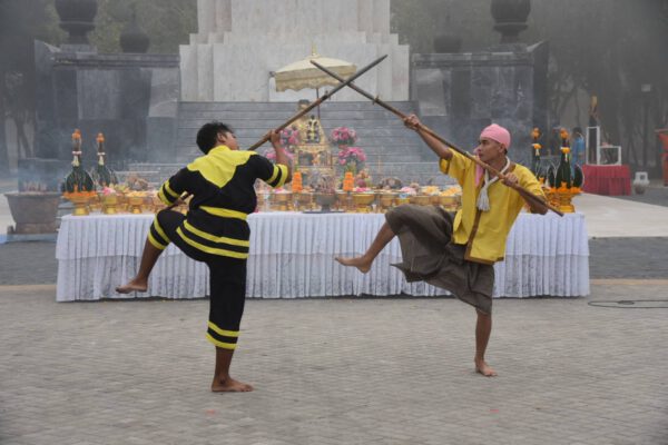 ประกอบพิธีบวงสรวงดวงพระวิญญาณสมเด็จพระนเรศวรมหาราช พิธีวางพานพุ่มดอกไม้สดถวายราชสักการะเบื้องหน้า พระบรมราชานุสาวรีย์ สมเด็จพระนเรศวรมหาราช พร้อมทั้งรับชมการแสดงชนไก่ การแสดงสาธิตการต่อสู้ด้วยดาบและทวน และการแสดงรำกฤษฎาภินิหารถวายราชสักการะ