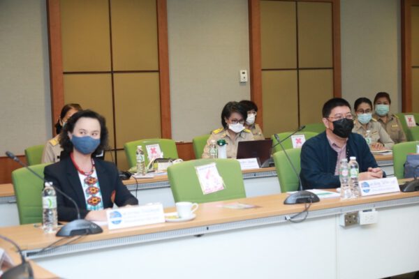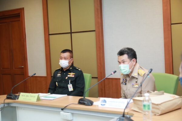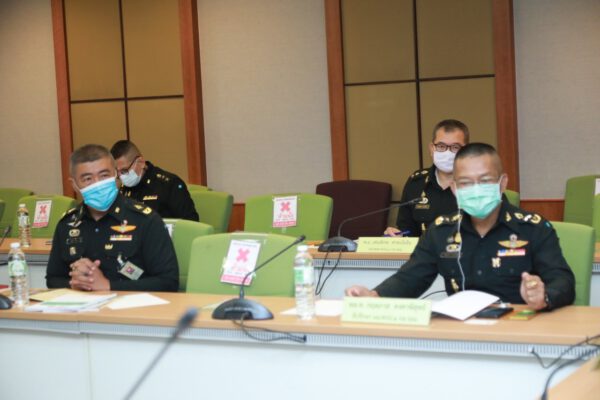 พล.ต. อุดม โกษากุล ผอ.ศปป.1 กอ.รมน. กล่าวขอบคุณ อธิบดีที่เปิดให้ชมวีดิทัศน์ที่เป็นประโยชน์โดยเฉพาะโคก หนอง นา ซึ่งเป็นภารกิจที่เป็นประโยชน์เป็นอย่างมากต่อกอ.รมน. โดยเฉพาะชุดปฏิบัติการ 01 เป็นหน่วยในการลงพื้นที่เพื่อทราบถึงปัญหาที่ชุมชนมีความต้องการและแก้ไขไม่ได้ ก็จะส่งมายังผู้ว่าราชการจังหวัด เป็นเวทีหลักในการช่วยเหลือความเดือดร้อนของประชาชน ซึ่งมาดูในเนื้องานพบว่า กรมการพัฒนาชุมชนและงานของกอ.รมน. มีความเกี่ยวพันใกล้ชิดกันเป็นอย่างมาก จึงอยากมาศึกษางานในการขับเคลื่อนงานการส่งเสริมสถาบันหลัก ชุดขุนด่าน เป็นหน่วยที่เข้าไปคลุกคลีกับชาวบ้าน ตรวจเยี่ยม พบปะชาวบ้าน เพื่อสอบถามปัญหาและความต้องการภายใต้หลักการทำงานโดยเฉพาะ ศาสตร์ของพระราชา ในการเสริมสร้างความมั่นคงในลักษณะเพิ่มศักยภาพเชิงพื้นที่ จังหวัดละ 1 ที่ ใน 14 พื้นที่ต้องการน้ำ หลายพันไร่ ในชุมชนที่ต้องการน้ำเข้าไปช่วยเหลือทั้ง 14 แห่ง และบางพื้นที่ต้องการดำเนินงานตามโครงการ โคก หนอง นาโมเดล โดยที่ชาวบ้านต้องการทำมากขึ้น แต่ขาดงบประมาณในการดำเนินการ ในเขตพื้นที่พัฒนา 14 พื้นที่ที่พัฒนาแหล่งน้ำไปแล้ว และร่วมงานกับสำนักงานการวิจัยแห่งชาติ (วช.) โดยนำองค์ความรู้ นวัตกรรมต่างๆ เข้าลงพื้นที่ บูรณาการทั้ง 14 พื้นที่ และพระนครศรีอยุธยา รวมพื้นที่เป้าหมาย 15 พื้นที่ ถ้าในส่วนของกรมการพัฒนาชุมชนเปิดโอกาสให้มีการขับเคลื่อนร่วมกัน เพื่อยกศักยภาพการทำงานเพื่อประโยชน์ของพี่น้องประชาชน