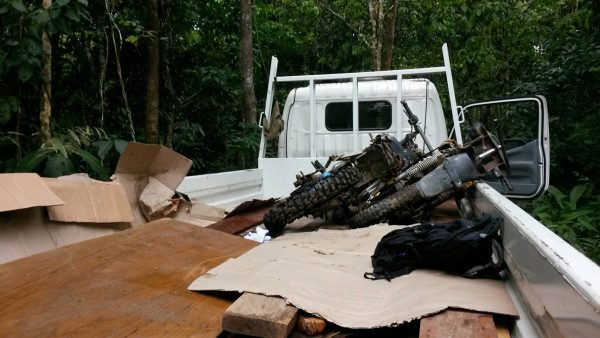 เจ้าหน้าที่ตรวจไม้ดังกล่าว ทุกตอ ทุกท่อน ทุกชิ้น ทุกแผ่น ไม่พบรอยรูปดวงตราของเจ้าพนักงานป่าไม้ตีประทับแต่อย่างใด เชื่อว่าเป็นไม้ที่ได้มาโดยมิชอบโดยกฎหมาย จึงทำการตรวจยึดไว้ ยังอยู่ในที่เกิดเหตุ เตรียมขนย้ายต่อไป ผู้กระทำความผิดที่ลักลอบตัดไม้ ลักลอบแปรรูปไม้ รู้ตัวก่อนเจ้าหน้าที่ไปถึงจึงหลบหนีไปได้ เนื่องจากอยู่ในป่าลึกบนภูเขาสูง เข้า-ออก พื้นที่เส้นทางเดียว ต้องผ่านหมู่บ้าน และในพื้นที่บนภูเขา จุดตัดต้นไม้ แปรรูปไม้ มีสัญญาณโทรศัพท์เคลื่อนที่ ทำให้มีการโทรบอกก่อนเจ้าหน้าที่ไปถึง คณะเจ้าหน้าที่ ตรวจยึดของกลางจำนวน 3 รายการ มาเก็บรักษาไว้ที่ อช.แห่งชาติบูโด-สุไหงปาดี ดังนี้ 1.ตรวจยึด ไม้แปรรูป ขนาดต่างๆ จำนวน 34 แผ่น/ชิ้น ปริมาตร 0.46ลบ.ม. 2.ตรวจยึด รถจักรยานยนต์ จำนวน 2 คัน ใช้ในการชักลากไม้แปรรูปในที่เกิดเหตุ 3.ตรวจยึด แม่แรง ใช้ยกไม้ จำนวน 2 ตัว ไม้ท่อน ไม้ซีก ไม้แปรรูป ขนาดใหญ่ ยังขนย้ายไม่ได้ ยังทิ้งไว้ในที่เกิดเหตุที่ เหตุเกิด บ้านน้ำตกวังทอง หมู่บ้านย่อยบ้านบองอ ม.4 ต.บองอ อ.ระแงะ จ.นราธิวาส ภายในบริเวณป่าสงวนแห่งชาติ ป่าบองอ และ เขตอุทยานแห่งชาติบูโด – สุไหงปาดี
