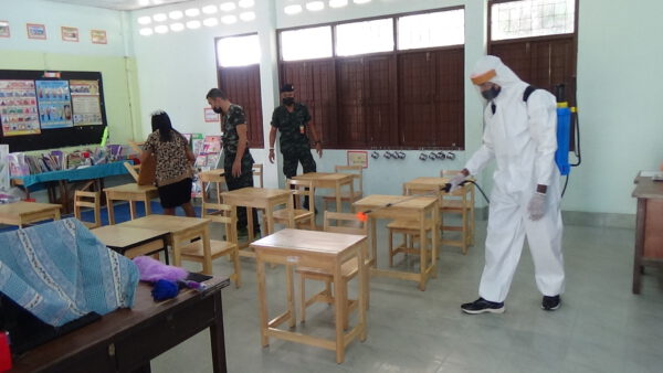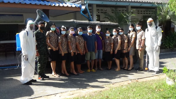 กองพันทหารราบที่ 4 กรมทหารราบที่ 15 ค่ายพระยารัษฎานุประดิษฐ์ อำเภอห้วยยอด จังหวัดตรัง ฉีดพ่นสารเคมีไฮโดรเจนเปอร์ออกไซด์ ฆ่าเชื้อพื้นที่บริเวณโรงเรียน และพื้นที่รอบๆ เพื่อป้องกันเชื้อไวรัสโคโรนา 2019 (โควิด-19) ในขณะที่โรงเรียนได้ขอบคุณทหารที่ให้ความช่วยเหลือ