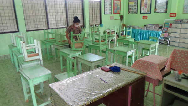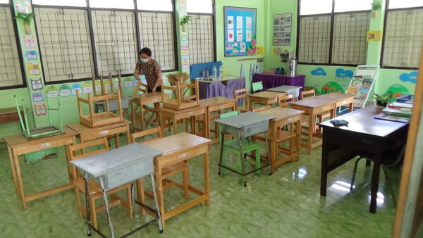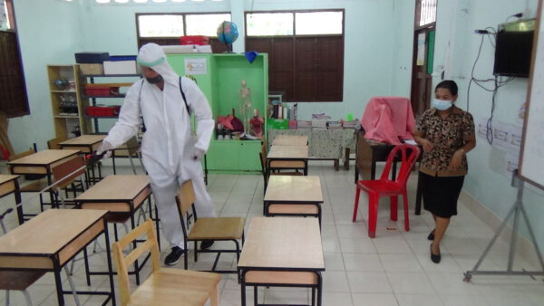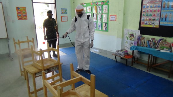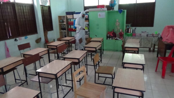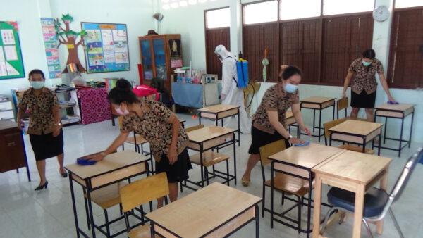 โดยได้ฉีดพ่นสารเคมีไฮโดรเจนเปอร์ออกไซด์ ฆ่าเชื้อพื้นที่ภายในอาคารห้องเรียน สนามเด็กเล่น ห้องปฐมพยาบาล ห้องน้ำและพื้นที่โดยรอบโรงเรียน ตามมาตรการป้องกันการแพร่ระบาดของเชื้อไวรัสโคโรน่าโควิด 19 ให้กับสถานศึกษา เพื่อเป็นการป้องกันการแพร่ระบาดของโควิด-19 และเป็นการสร้างความมั่นใจให้กับคณะครู นักเรียน