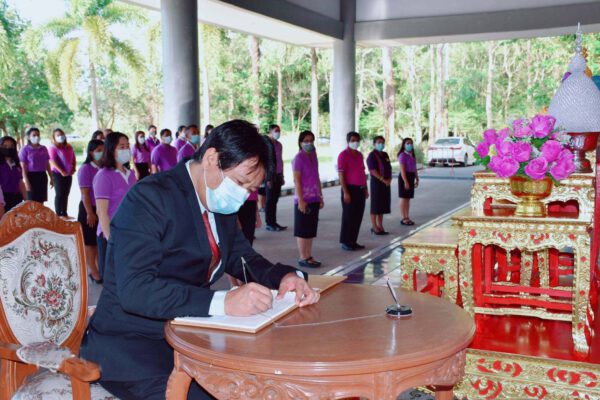 รองอธิการบดีประจำวิทยาเขตตรัง มทร.ศรีวิชัย วิทยาเขตตรัง พร้อมด้วย คณะผู้บริหาร อาจารย์ บุคลากร และนักศึกษา ทูลเกล้า ทูลกระหม่อม ถวายพานดอกไม้ ลงนามถวายพระพร ‘กรมสมเด็จพระเทพฯ’ ให้ทรงหายจากพระอาการประชวร