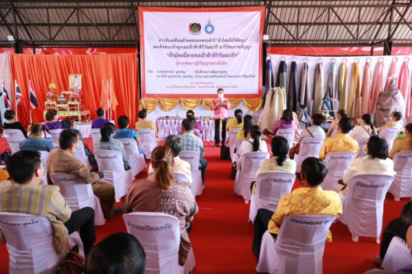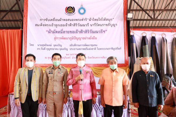 วันที่ 29 มกราคม 2564 เวลา 14.30 น. นายสุทธิพงษ์ จุลเจริญ อธิบดีกรมการพัฒนาชุมชน กระทรวงมหาดไทย เป็นประธานเวทีแลกเปลี่ยนการขับเคลื่อนผ้าทอ สนองพระดำริ “ผ้าไทยใส่ให้สนุก” ร่วมกับกลุ่มทอผ้า ผู้ผลิตผู้ประกอบการ OTOP ในการขับเคลื่อนกระบวนการ “ต้นน้ำ กลางน้ำ ปลายน้ำ” การสืบสาน “อนุรักษ์ศิลป์ผ้าถิ่นไทย ดำรงไว้ในแผ่นดิน” และเยี่ยมชมความก้าวหน้าการทอผ้าลาย “ผ้ามัดหมี่ลายขอเจ้าฟ้าสิริวัณณวรีฯ” สู่การพัฒนาภูมิปัญญาอย่างยั่งยืน โดยมี นายวิเชียร จันทรโณทัย ผู้ว่าราชการจังหวัดนครราชสีมา นายสุรศักดิ์ อักษรกุล รองอธิบดีกรมการพัฒนาชุมชน นายบัลลังก์ ไวทย์ศิริ นายอำเภอปักธงชัย นางสาวฑัชชา ปรีดาวิจิตรกุล ประธานเครือข่ายOTOP นายนุวัฒน์ พรมจันทึก ผู้แทนศูนย์หม่อนไหมเฉลิมพระเกียรติฯ นครราชสีมา พร้อมด้วย หัวหน้าส่วนราชการระดับจังหวัด คณะผู้บริหารกรมการพัฒนาชุมชนและเจ้าหน้าที่กรมการพัฒนาชุมชน ทั้ง 32 อำเภอ และกลุ่มทอผ้าจากกลุ่มนครชัยบุรินทร์ ใน 4 จังหวัด (นครราชสีมา,ชัยภูมิ,บุรีรัมย์,สุรินทร์) จำนวน 78 กลุ่ม และกลุ่มทอผ้า จ.มหาสารคาม จำนวน 3 กลุ่ม จ.สกลนคร จำนวน 5 กลุ่ม รวมทั้งหมด จำนวน 86 กลุ่ม เข้าร่วม ณ ศูนย์ไหมนครชัยบุรินทร์ อำเภอปักธงชัย จังหวัดนครราชสีมา
