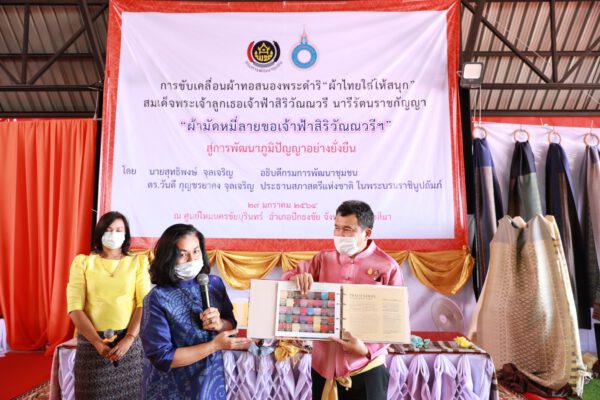 นายสุทธิพงษ์ จุลเจริญ อธิบดีกรมการพัฒนาชุมชน กล่าวว่า กรมการพัฒนาชุมชนมีความปลาบปลื้มปีติ ในพระมหากรุณาธิคุณ สมเด็จพระเจ้าลูกเธอ เจ้าฟ้าสิริวัณณวรี นารีรัตนราชกัญญา ทรงมีพระเมตตาห่วงใยพสกนิกรชาวไทย สืบสาน รักษา และต่อยอด พระราชปณิธานของ สมเด็จพระนางเจ้าสิริกิติ์ พระบรมราชินีนาถ พระบรมราชชนนีพันปีหลวง ในพระราชกรณีกิจด้านงานผ้า และทรงมีพระเมตตาพระราชทานแบบลาย “ผ้ามัดหมี่ลายขอเจ้าฟ้าสิริวัณณวรีฯ” ผ่านอธิบดีกรมการพัฒนาชุมชน เพื่อเป็นของขวัญปีใหม่และสื่อความหมายถึงการส่งมอบความรักและความสุขให้แก่พสกนิกรชาวไทยทุกคนและมีพระดำริในการดำเนินงาน “ผ้าไทย ใส่ให้สนุก” ประทานพระอนุญาตให้กรมการพัฒนาชุมชน ได้จัดกิจกรรมประกวดลายผ้าพระราชทาน กลุ่มทอผ้าทุกกลุ่ม สามารถพัฒนาต่อยอด ประยุกต์ได้ทุกผ้าทุกเทคนิค พระอัจฉริยภาพของ สมเด็จพระเจ้าลูกเธอ เจ้าฟ้าสิริวัณณวรี นารีรัตนราชกัญญา ด้านการออกแบบเครื่องแต่งกายสิ่งทอและการอนุรักษ์ผ้าไทย โดยมีพระประสงค์ในการอนุรักษ์ผ้าไหมแท้ของไทย และการใช้สีจากธรรมชาติ พร้อมทั้งพระราชทานหนังสือ Thai Textiles Trend Book ในเรื่องของกระแสแฟชั่นวงการผ้า สี และแนวโน้มที่เป็นที่นิยมในอนาคต แสดงถึงพระอัจฉริยภาพด้านผ้าไทยให้เห็นเป็นที่ประจักษ์ ทั้งนี้การดำเนินงาน “ผ้าไทย ใส่ให้สนุก” โดยผู้ที่เข้ากิจกรรมประกวดลายผ้าพระราชทาน สามารถศึกษาสีได้จากหนังสือเล่มนี้ โดยการประกวดจะมีหลายหลายประเภททั้งเป็นการกระตุ้นศิลปินหน้าเก่า และสร้างศิลปินเยาวชนรุ่นใหม่ ซึ่งจะชี้แจงแนวทางที่ชัดเจนต่อไป อันเป็นการพัฒนาต่อยอดผ้าไทย ภูมิปัญญาของความเป็นไทย ตามพระดำริ “ผ้าไทยใส่ให้สนุก” เพื่อกระตุ้น ส่งเสริม สร้างงาน สร้างรายได้กลับสู่ชุมชน อนุรักษ์และพัฒนาต่อยอดผ้าไทยให้ทันสมัยสู่สากลเป็นที่นิยมในทุกเพศทุกวัย