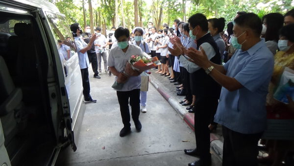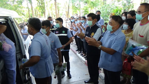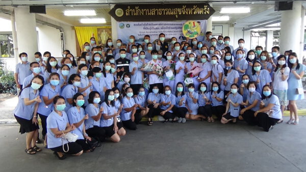 สำนักงานสาธารณสุขจังหวัดตรัง ส่งทีมวีรบุรุษชุดขาว ไปปฏิบัติงานที่จังหวัดสมุทรสาคร โดยมีแพทย์พยาบาลและครอบครัว มารอส่งให้กำลังใจกีบทีมที่ไปปฏิบัติหน้าที่