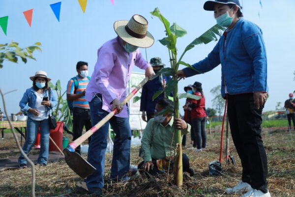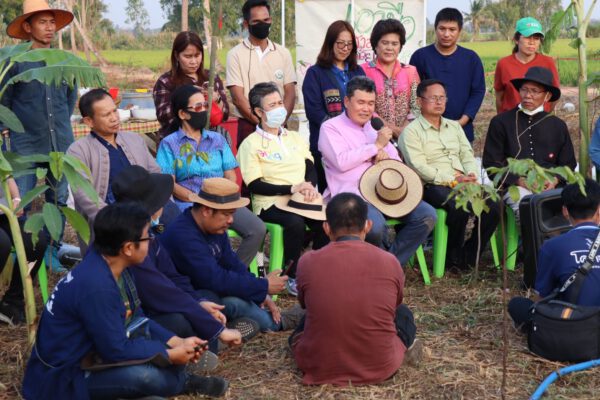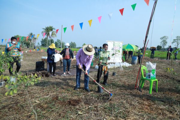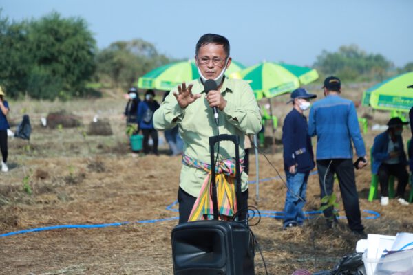 ในการนี้ นายสุทธิพงษ์ จุลเจริญ อธิบดีกรมการพัฒนาชุมชน กล่าวขอบคุณทุกท่านที่เข้าร่วมโครงการด้วยความสมัครสมานสามัคคีของคนชุมชน ในกิจกรรม “เอามื้อสามัคคี“ ภายใต้โครงการพัฒนาพื้นที่ต้นแบบการพัฒนาคุณภาพชีวิตตามหลักทฤษฎีใหม่ประยุกต์สู่ “โคก หนอง นา โมเดล“ โดยการทำดีด้วยการปลูกไม้ 3 อย่างประโยชน์ 4 อย่าง ซึ่งเป็นการน้อมนำในแนวทางตามหลักทฤษฎีใหม่ของพระบาทสมเด็จพระบรมชนกาธิเบศร มหาภูมิพลอดุลยเดชมหาราช บรมนาถบพิตร รัชกาลที่ 9 ที่พระองค์ทรงพระราชทานให้คนไทยและความมั่นคงของประเทศอย่างยั่งยืน เป็นการจัดการพื้นที่อย่างเหมาะสม โดยหลักเกษตรทฤษฎีใหม่ เนื่องจากในวิกฤตการเปลี่ยนแปลงภูมิอากาศ (climate chang) จากพฤติกรรมของมนุษย์ในการเบียดเบียนธรรมชาติเป็นอย่างมาก เราควรร่วมกันลดโลกร้อน โดยการใช้ถังขยะเปียก จากเศษอาหาร เพื่อเป็นปุ๋ยบำรุงดิน ในพื้นที่ตามหลักกสิกรรมธรรมชาติ ด้วยสำนึกในพระมหากรุณาธิคุณพระบาทสมเด็จพระบรมชนกาธิเบศร มหาภูมิพลอดุลยเดชมหาราชบรมนาถบพิตร ที่ทรงพระราชทานเกษตรทฤษฎีใหม่ ตามหลักปรัชญาของเศรษฐกิจพอเพียงและเกษตรทฤษฎีใหม่มาให้พี่น้องประชาชนได้มาปฏิบัติในการดำรงชีวิตประจำวันให้เป็นมิตรกับสิ่งแวดล้อม สามารถพึ่งพาตนเองได้ โดยเฉพาะปัจจัย 4 ในเรื่องอาหาร อาหารที่ปลอดภัยต่อการดำรงชีวิต เช่น การปลูกพืชผักสวนครัว เพื่อสร้างความมั่นคงทางอาหารอย่างยั่งยืนแก่พี่น้องประชาชน