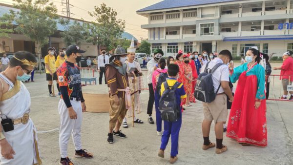 ผอ.โรงเรียนอนุบาลบ้านท่าพระยาจักร กล่าวเพิ่ม ในฐานะเป็นผู้บริหารสถานศึกษาไม่ได้รู้สึกเขินอายอะไร ครูจัดกิจกรรมอะไรก็จะมาร่วมด้วยทุกครั้ง วันนี้แต่งเป็นเทพแห่งรัก“คิวปิด”ร่วมกับคณะครูมาต้อนรับพร้อม นอกจากนี้ยังมีคุณครูเกือบ 100 คน พร้อมใจกันแต่งแฟนซีในชุดต่างๆ เช่น ชุดนักรบโบราณ นักมวยไทย สาวเกาหลี กุมารทอง เทวดาประจำศาลพระภูมิ นักฟุตบอล นักวิทยาศาสตร์ ไทยทรงดำ แม่มด มาสค็อตตัวสัตว์ต่างๆ และชุดกี่เพ้า เพิ่มบรรยากาศสีสันการต้อนรับนักเรียนในวันเปิดเรียนวันแรกเป็นไปอย่างคึกคัก