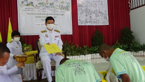 พระบาทสมเด็จพระเจ้าอยู่หัว ทรงพระกรุณาโปรดเกล้าโปรดกระหม่อมให้ นายขจรศักดิ์ เจริญโสภา ผู้ว่าราชการจังหวัดตรัง เป็นผู้แทนพระองค์ในพิธีมอบประกาศนียบัตรแก่ผู้ผ่านการอบรมโครงการพระราชทาน “โคก หนอง นา แห่งน้ำใจและความหวังกรมราชทัณฑ์” ณ เรือนจำจังหวัดตรัง พระบาทสมเด็จพระเจ้าอยู่หัว ทรงห่วงใยความเป็นอยู่ และการดำรงชีวิตของประชาชนทุกหมู่เหล่า รวมทั้งผู้ต้องขัง ซึ่งเมื่อพ้นโทษไปแล้ว ให้สามารถดำเนินชีวิต และประกอบอาชีพพึ่งพาตนเองได้ จึงได้ทรงพระกรุณาโปรดเกล้าโปรดกระหม่อมให้มีการฝึกอบรมโครงการพระราชทาน “โคก หนอง นา แห่งน้ำใจและความหวัง กรมราชทัณฑ์” ซึ่งประยุกต์ใช้ทฤษฎีใหม่แบบชาวบ้าน ป้นโคก ขุดหนอง ทำนา เพื่อสร้างต้นแบบเกษตรทฤษฎีใหม่ในพื้นที่ขนาดเล็ก โดยสามารถดำเนินการได้ในทุกเรื่องทุกเงื่อนไขของพื้นที่ และมุ่งเน้นการปรับเปลี่ยนพื้นฐานความคิด การฝึกวินัย การลงมือปฏิบัติ ตลอดจนการแก้ไขปัญหาในสถานการณ์จริง เพื่อให้ผู้ต้องขังสามารถพึ่งพาตนเอง และช่วยเหลือผู้อื่นที่ได้รับความเดือดร้อนได้ เมื่อพ้นโทษออกไปภายนอก ในการนี้มีผู้เข้ารับการอบรมในส่วนของเรือนจำจังหวัดตรัง พระบาทสมเด็จพระเจ้าอยู่หัว ทรงพระกรุณาโปรดเกล้าโปรดกระหม่อมให้ ผู้ว่าราชการจังหวัดตรัง เป็นผู้แทนพระองค์ ในพิธีมอบประกาศนียบัตร แก่ผู้ผ่านการอบรมในรุ่นที่ 2/3 ของเรือนจำจังหวัดตรัง จำนวน 149 ราย