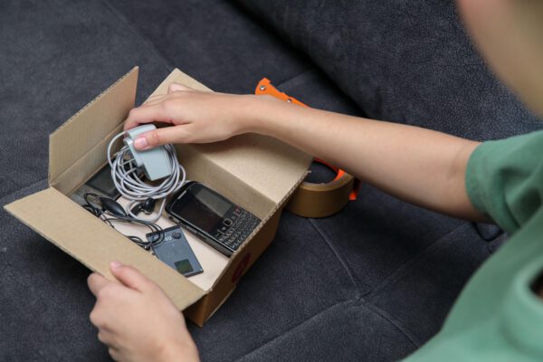 1.เตรียม E-Waste ทั้ง 5 ประเภท ได้แก่ โทรศัพท์มือถือ/แท็บเล็ต, สายชาร์จ, หูฟัง, พาวเวอร์แบงก์ และแบตเตอรี่มือถือ ให้พร้อม และนำใส่กล่อง พร้อมเขียนหน้ากล่อง “ฝากทิ้ง ขยะอิเล็กทรอนิกส์”
