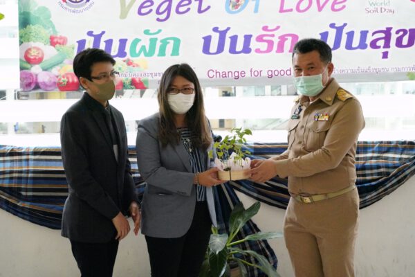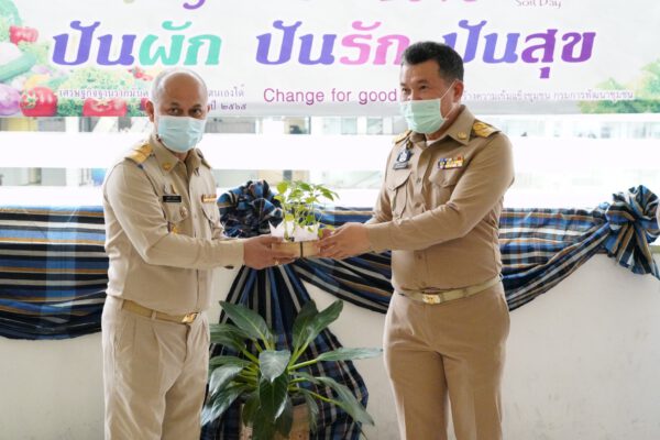 วันที่ 23 กุมภาพันธ์ 2564 นายสุทธิพงษ์ จุลเจริญ อธิบดีกรมการพัฒนาชุมชน เป็นประธานในกิจกรรม“Veget of Love : สสช. ปันผัก ปันรัก ปันสุข” การขับเคลื่อนการดำเนินงานการน้อมนำ แนวพระราชดำริของสมเด็จพระกนิษฐาธิราชเจ้า กรมสมเด็จพระเทพรัตนราชสุดาฯ สยามบรมราชกุมารี สร้างความมั่นคงทางอาหาร สู่แผนปฏิบัติการ 90 วัน ปลูกผักสวนครัวเพื่อสร้างความมั่นคงทางอาหาร รอบ 2 ในการนี้ นางวิไลวรรณ ไกรโสดา รองอธิบดีกรมการพัฒนาชุมชน นายสุรศักดิ์ อักษรกุล รองอธิบดีกรมการพัฒนาชุมชน และคณะผู้บริหาร เจ้าหน้าที่กรมการพัฒนาชุมชน ร่วมงาน โดยมีนางสาวนิภา ทองก้อน ผู้อำนวยการสำนักเสริมสร้างความแข็งชุมชน นำเยี่ยมชม ณโถงหน้าห้องสมุด ชั้น 5 กรมการพัฒนาชุมชน ภายในงานมีการจัดกิจกรรมมอบต้นกล้าผักให้กับผู้บริหารกรมการพัฒนาชุมชน เพื่อนำไปเพาะพันธุ์ต่อ พร้อมเยี่ยมชมนิทรรศการและบูทอาหาร ชิมเมนูสุขภาพ กิจกรรมการแลกเปลี่ยน แบ่งปันพันธุ์ผักสวนครัว สาธิตการตำส้มตำลีลา และกิจกรรมการประกอบอาหารจากผักเพิ่มพลัง หยุดยั้งโควิด