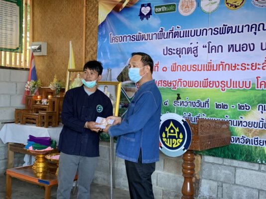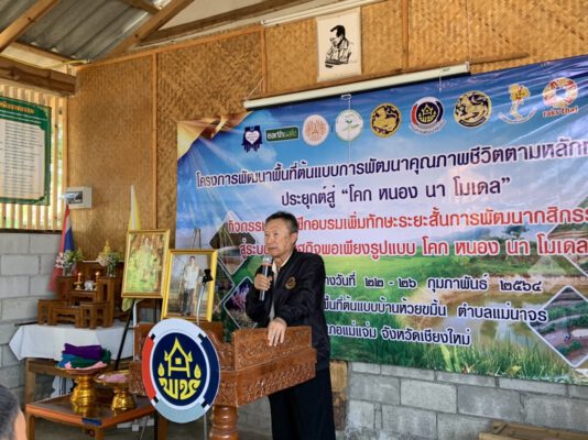 กิจกรรมการฝึกอบรมโครงการพัฒนาพื้นที่ต้นแบบการพัฒนาคุณภาพชีวิตตามหลักทฤษฎีใหม่ ประยุกต์สู่ “โคก หนอง นา โมเดล” กิจกรรมที่ 1 ฝึกอบรมเพิ่มทักษะระยะสั้นการพัฒนากสิกรรมสู่ระบบเศรษฐกิจพอเพียง รูปแบบ โคก หนอง นา โมเดล รุ่นที่ 4 อำเภอแม่แจ่ม จังหวัดเชียงใหม่ ดำเนินกิจกรรม ระหว่างวันที่ 22-26 กุมภาพันธ์ 2564 มีกลุ่มเป้าหมายครัวเรือนต้นแบบในพื้นที่ตำบลแม่นาจร และตำบลแม่ศึก เข้าร่วมโครงการฯ จำนวน 86 คน โดยมีวัตถุประสงค์ เพื่อส่งเสริมการเรียนรู้การน้อมนำหลักปรัชญาของเศรษฐกิจพอเพียงประยุกต์สู่การปฏิบัติในรูปแบบ “โคก หนอง นา โมเดล“ เพื่อพัฒนาพื้นที่เรียนรู้ชุมชนต้นแบบ “โคก หนอง นา โมเดล” ตามหลักปรัชญาของเศรษฐกิจพอเพียง ระดับตำบล และระดับครัวเรือน และเพื่อฟื้นฟูเศรษฐกิจท้องถิ่นและชุมชนผ่านการสร้างงานสร้างรายได้ ให้แก่เกษตรกร แรงงานและบัณฑิตจบใหม่ กลุ่มแรงงานที่อพยพกลับท้องถิ่นและชุมชน ที่ได้รับผลกระทบจากสถานการณ์ในช่วงวิกฤตการแพร่ระบาดของโรคติดเชื้อไวรัสโคโรนา 2019 (COVID – 19) สำหรับการฝึกอบรมฯได้กำหนดหลักสูตรเนื้อหาวิชา/ฝึกปฏิบัติฯ อาทิ (1) เรียนรู้ ตำราบนดิน:กิจกรรมเดินชมพื้นที่ (2) เข้าใจ เข้าถึง พัฒนา ศาสตร์พระราชากับการพัฒนาที่ยั่งยืน (3) ปรัชญาของเศรษฐกิจพอเพียง“ทฤษฎีบันได 9 ขั้น สู่ความพอเพียง (4) หลักกสิกรรมธรรมชาติ (5) ฝึกปฏิบัติ “ฐานเรียนรู้” อาทิ ฐานคนรักษ์ป่า ฐานคนรักษ์แม่ธรณี ฐานคนรักษ์น้ำ ฐานคนรักษ์แม่โพสพ ฐานคนเอาถ่าน ฐานคนรักษ์สุขภาพ ฐานคนมีน้ำยา (6) ฝึกปฏิบัติ “จิตอาสาพัฒนา เอามื้อสามัคคีพัฒนาพื้นที่ตามหลักทฤษฎีใหม่” (7) การออกแบบเชิงภูมิสังคมตามหลักพัฒนาภูมิสังคมอย่างยั่งยืนเพื่อการพึ่งตนเองและรองรับภัยพิบัติ (8) ฝึกปฏิบัติการสร้างหุ่นจำลองการจัดการพื้นที่ตามหลักทฤษฎีใหม่ประยุกต์สู่ “โคก หนอง นา โมเดล” (9) ฝึกปฏิบัติการบริหารจัดการในภาวะวิกฤตหาอยู่หากิน (10) การขับเคลื่อนสืบสานศาสตร์พระราชากลไก 3 5 7 (3 ระดับ 5 กลไก 7 ภาคี) (8) จัดทำแผนปฏิบัติ “ยุทธศาสตร์การขับเคลื่อนปรัชญาเศรษฐกิจพอเพียงสู่การปฏิบัติ” (11) และอื่น ๆ เพื่อให้ครัวเรือนต้นแบบที่ผ่านการฝึกอบรมตามหลักสูตรฯ มีความรู้ ความเข้าใจ แนวคิด ทฤษฎี การบริหารจัดการ และลงมือฝึกปฏิบัติ สามารถเป็นแกนนำขับเคลื่อนหมู่บ้าน เพื่อเสริมสร้างทักษะความรู้เบื้องต้น ในระยะเวลา 5 วัน 4 คืน