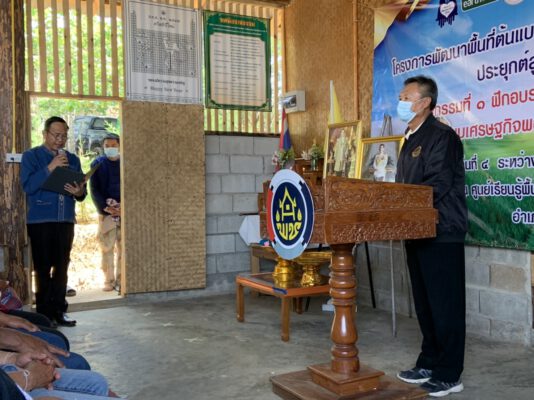 นายประชา เตรัตน์ กล่าวว่า ศาสตร์พระราชา องค์ความรู้ที่เป็นปัญญาของพระบาทสมเด็จพระชนกาธิเบศร มหาภูมิพลอดุลยเดชมหาราชบรมนาถบพิตร รัชกาลที่ 9 จากกระบวนการทรงงานในโครงการพระราชดำริต่าง ๆ ก็คือ องค์ความรู้ที่ว่าด้วยเรื่อง“การพัฒนาอย่างยั่งยืน” ที่ครอบคลุมในทุกมิติ ด้านเศรษฐกิจ สังคม เทคโนโลยีและสิ่งแวดล้อม พระราชประสงค์ของพระองค์ คือ การพัฒนาและยกระดับคุณภาพชีวิตความเป็นอยู่และด้านจิตใจของประชาชนคนไทยเป็นสำคัญ ให้เป็นชุมชนที่ อยู่เย็นเป็นสุข ในการขับเคลื่อนศาสตร์พระราชา คือการนำองค์ความรู้มาประยุกต์ใช้กับแนวคิดการพัฒนาพื้นที่และการออกแบบเชิงภูมิสังคมไทยเพื่อการพึ่งพาตนเองได้ ที่เรียกว่า “โคก หนอง นา โมเดล” สิ่งที่สำคัญที่สุดคือการพัฒนาคุณภาพชีวิตให้มีความสุข มีความมั่นคงในชีวิต มีความมั่นคงทางอาหาร ผู้ที่ผ่านการฝึกอบรมในครั้งนี้ จึงมีความสำคัญในการนำองค์ความรู้ ศาสตร์พระราชา น้อมนำไปพัฒนาคุณภาพชีวิตตนเอง และเป็นต้นแบบ เป็นตัวอย่างสามารถถ่ายทอดองค์ความรู้สู่ครอบครัว สู่เพื่อนบ้าน สู่ชุมชน สู่อำเภอแม่แจ่มต่อไป เพื่อยกระดับเศรษฐกิจฐานรากและพัฒนาคุณภาพชีวิต ลดความเหลื่อมล้ำในสังคม สร้างความสามัคคีในชุมชนอย่างมั่นคง มั่งคั่ง และยั่งยืนต่อไป