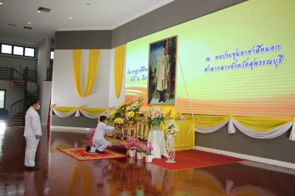 ที่หอประชุมอาชาสีหมอก ศาลากลางสุพรรณบุรี นายณัฐภัทร สุวรรณประทีป ผู้ว่าราชการจังหวัดสุพรรณบุรี เป็นประธานในพิธีถวายเครื่องราชสักการะพระบาทสมเด็จพระบรมชนกาธิเบศร มหาภูมิพลอดุลยเดชมหาราช บรมนาถบพิตร “พระบิดาแห่งมาตรฐานการช่างไทย”
