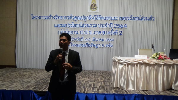 โรงแรมเรือรัษฎา ตำบลทับเที่ยง อำเภอเมืองตรัง จังหวัดตรัง นายศรชัย ชูวิเชียร ผู้ช่วยเลขธิการคณะกรรมการ ป.ป.ช.ภาค 9 เป็นประธานในพีเปิดอบรมการสร้างวิทยากรตัวคูณในการปลูกฝังวิธีคิดแยกแยะผลประโยชน์ส่วนตัวและผลประโยชน์ส่วนรวม (สำนักงาน ป.ป.ช.ภาค 9) สืบเนืองจากคณะรัฐมนตรี มีมติเห็นชอบให้สำนักงานคณะกรรมการป้องกันและปราบปรามการทุจริตแห่งชาติ เป็นหน่วยงานหลักในการขับเคลื่อนแผนแม่บทภายใต้ยุทธศาสตร์ชาติ ประเด็นการต่อต้านการทุจริตและประพฤติมิชอบ ซึ่งได้กำหนดเป้าหมายไว้คือ 1.ประชาชนมีวัฒนธรรมและพฤติกรรมซื่อสัตย์สุจริต 2.คดีทุจริตและประพฤติมิชอบลดลง 3.การดำเนินคดีทุจริตมีความรวดเร็ว เป็นธรรม โปร่งใส ไม่เลือกปฏิบัติ โดยเป้าหมายที่ 1 ประชาชนมีวัฒนธรรมและพฤติกรรมซื่อสัตย์สุจริต มีหนึ่งตัวชี้วัดคือ เด็กและเยาวชนไทยมีพฤติกรรมที่ยึดมั่นความซื่อสัตย์สุจริต ร้อยละ 50 ส่งผลให้ในปี 2561 สำนักงาน ป.ป.ช.ได้แต่งตั้งคณะอนุกรรมการจัดทำหลักสูตรหรือชุดการเรียนรู้และสื่อประกอบการเรียนรู้ด้านการป้องกันการทุจริต เพื่อดำเนินการสร้างหลักสูตรต้านทุจริตศึกษา ประกอบด้วย 5 หลักสูตร คือ หลักสูตรการศึกษาขั้นพื้นฐาน (รายวิชาเพิ่มเติมการป้องกันการทุจริต) 2.หลักสูตรอุดมศึกษา (วัยใส ใจสะอาด youngster with good heart) 3.หลักสูตรตามแนวทางรับราชการ กลุ่มทหารและตำรวจ 4.หลักสูตรสร้างวิทยากรผู้นำการเปลี่ยนแปลงสู่สังคมที่ไม่ทนต่อการทุจริต และ 5.หลักสูตรโค้ชเพื่อการรู้คิดต้านทุจริต โดยหลักสูตรทั้งหมด คณะรัฐมนตรีมีมติเห็นชอบ เมื่อวันที่ 18 สิงหาคม 2563 ให้หน่วยงานที่เกี่ยวข้องนำหลักสูตรต้านทุจริตศึกษาดำเนินการเป็นรายวิชาเพิ่มเติมกับกลุ่มเป้าหมาย โดยประสานงานกับสำนักงาน ป.ป.ช.อย่างใกล้ชิด เพื่อให้บรรลุวัตถุประสงค์ตามกำหนดพร้อมรายงานผลสัมฤทธิ์ให้คณะกรรมการนโยบายและพัฒนาการศึกษาทราบเป็นระยะ