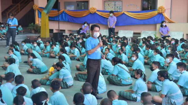 เปิดโอกาสให้นักเรียนได้แสดงออก ร่วมตอบคำถาม พร้อมมอบรางวัล ซึ่งเรียกความสนใจจากเด็ก ๆ ได้อย่างดี พร้อมฝากเด็ก ๆ ให้ยึดหลักปฏิบัติ 3 ข้อ คือ สุขกาย หมายถึงเอาของดีเข้าร่างกาย เช่น อาหารดี ๆ ไม่ยุ่งเกี่ยวกับยาเสพติด /สุขใจ หมายถึง ให้รักษาศีล 5 อยู่เสมอ และ มีเงินใช้ไม่ขัดสน หมายถึง ให้ตั้งใจเรียน เชื่อฟังครู เชื่อฟังพ่อแม่ เพื่อให้มีอนาคต มีอาชีพที่ดีอย่างไรก็ตาม ชุมชนคือหัวใจสำคัญ หากชุมชนมีความรัก ความสามัคคี เป็นต้นแบบที่ดี เด็กๆ จะซึมซับและเป็นคนดีของชุมชน