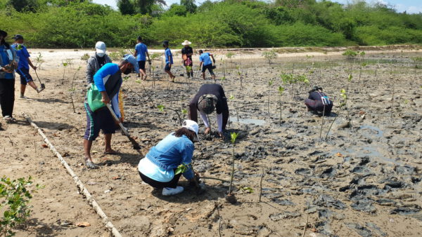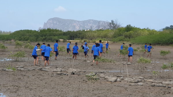 เมื่อเวลา 14.00 น.วันที่ 5 มีนาคม 2564 พ.อ.กรกานต์ นาเวชวนิชกุล รองผู้อำนวยการรักษาความมั่นคงภายใน(รมน.)จังหวัดประจวบคีรีขันธ์ นำเจ้าหน้าที่ กอ.รมน.จังหวัด ร่วมกับ นายนิทัศน์ จันทร์ทอง ทรัพยากรธรรมชาติและสิ่งแวดล้อมจังหวัดประจวบฯ นายพศวัต คุระวรรณ ผู้อำนวยการศูนย์บริหารจัดการทรัพยากรป่าชายเลนประจวบฯ เจ้าหน้าที่สำนักงานทรัพยากรธรรมชาติและสิ่งแวดล้อมจังหวัด ร่วมจัดกิจกรรมปลูกป่าชายเลน ภายใต้โครงการอบรมเยาวชนและประชาชนร่วมปกป้องผืนป่าและทรัพยากรธรรมชาติ โดยมี คณะครู และนักเรียน จากโรงเรียนเทศบาลวัดธรรมิการาม(ปิยะแหวนรังสรรค์) กลุ่มจิตอาสาฯ และประชาชนในพื้นที่ เข้าร่วมกิจกรรมกว่า 100 คน