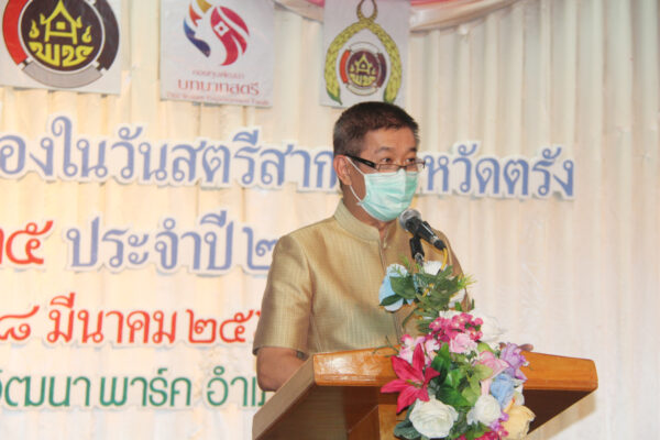 ที่โรงแรมวัฒนา พาร์ค อำเภอเมืองตรัง จังหวัดตรัง นายขจรศักดิ์ เจริญโสภา ผู้ว่าราชการจังหวัดตรัง เป็นประธานเปิดงานชุมนุมสตรีเนื่องในวันสตรีสากล จังหวัดตรัง ครั้งที่ 35 ประจำปี 2564 โดยมี นางสวาทวรรณ มนัสนิโลบล ประธานคณะกรรมการพัฒนาสตรีจังหวัดตรัง กล่าวรายงานการจัดงาน และ นายสริห์ หอมหวล พัฒนาการจังหวัดตรัง ประกาศรายชื่อสตรีดีเด่น ประจำปี 2564 จากทั้ง 10 อำเภอ และจากเหล่ากาชาดจังหวัด จำนวน 1 ราย รวม 11 ราย ทั้งนี้ มีสมาชิกสตรี จำนวน 200 คน จากทั้ง 10 อำเภอ เข้าร่วมงานฯ ประกอบด้วย นายอำเภอ หัวหน้าส่วนราชการ คณะอนุกรรมการเครือข่ายกองทุนพัฒนาบทบาทสตรี เหล่ากาชาดจังหวัด พัฒนาการอำเภอ และเจ้าหน้าที่พัฒนา ชุมชนจังหวัดตรัง ซึ่งได้กำหนดจัดงานวันสตรีสากล ตรงกับวันที่ 8 มีนาคม ของทุกปี เพื่อให้สตรีได้แสดงพลังร่วมกันทำกิจกรรมที่เป็นประโยชน์ต่อสตรี ในการพัฒนาสตรีให้มี คุณภาพชีวิต ที่ดีขึ้น และการยกย่องประกาศเกียรติคุณ เชิดชูเกียรติแก่ผู้นำสตรีที่ทำคุณประโยชน์ต่อส่วนรวม ชุมชน และสังคม