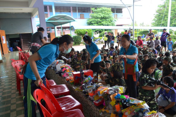 จึงมีความคิดในการนำของต่างๆเหล่านี้ ส่งต่อเพื่อให้เกิดเป็นปนะโยชน์แก่สาธารณะ จึงมอบหมายให้ทีมงาน ประกอบไปด้วย คุณกิตติพงศ์ ชูช่วย , คุณตุ้ย คลองน้อย พร้อมด้วยคณะสี่ล้อสายบุญจาก จ.จันทบุรี สิงห์บุรี ประจวบคีรีขันธ์ นำเสื้อผ้าชุดทหาร ขนม น้ำแดง เสื้อผ้า เครื่องนุ่งห่ม ผ้าห่ม อุปกรณ์การเรียน อุปกรณ์กีฬา และ เงินสมทบทุนอาหารกลางวันเด็กๆ อีกจำนวน 18,000 บาท