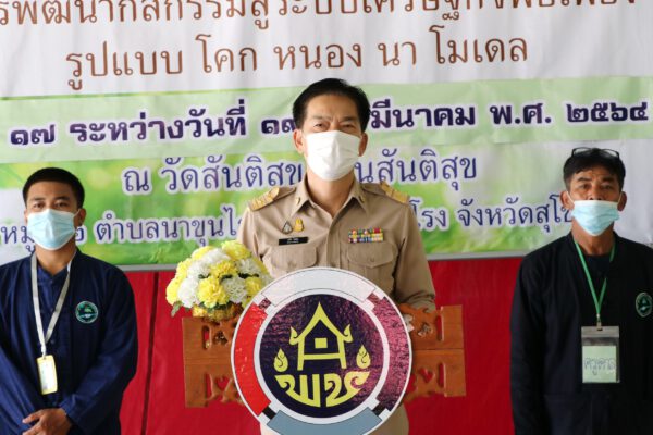วันที่ 19 มีนาคม 2564 เวลา 10.30 น. นายวิรุฬ พรรณเทวี ผู้ว่าราชการจังหวัดสุโขทัยมอบหมายนายธวัช ใสสม พัฒนาการจังหวัดสุโขทัย เป็นประธานเปิดการอบรมโครงการพัฒนาพื้นที่ต้นแบบการพัฒนาคุณภาพชีวิต ตามหลักทฤษฎีใหม่ ประยุกต์สู่โคก หนอง นา โมเดล รุ่นที่ 17 กิจกรรมที่ 1 ฝึกอบรมเพิ่มทักษะระยะสั้นการพัฒนากสิกรรม สู่ระบบเศรษฐกิจพอเพียง รูปแบบ โคก หนอง นา โมเดล ให้กับนักพัฒนาพื้นที่ต้นแบบ , ครัวเรือนต้นแบบ HLM พร้อมทั้งให้กำลังใจกับผู้เข้ารับการอบรมโครงการดังกล่าว ณ ศูนย์ศึกษาการพัฒนาชุมชน(วัดสันติสุข) หมู่ที่ 2 ตำบลนาขุนไกรอำเภอศรีสำโรงจังหวัดสุโขทัย