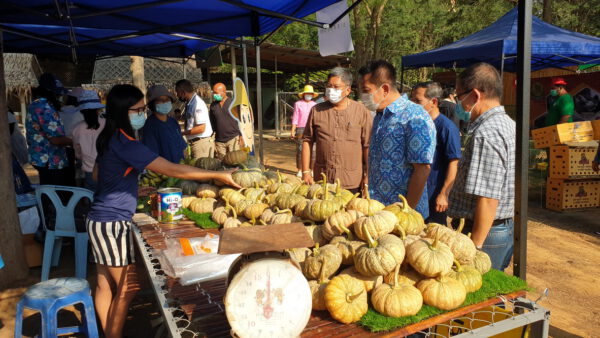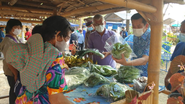 เมื่อเวลา 15.00 น. วันที่ 20 มีนาคม 2564 ที่ตลาดเกษตรสร้างสุข @โลสาม ต.อ่าวน้อย อ.เมือง จ.ประจวบคีรีขันธ์ นายชาตรี จันทร์วีระชัย รองผู้ว่าราชการจังหวัดประจวบคีรีขันธ์ เป็นประธานเปิดงาน ตลาดเกษตรสร้างสุข @โลสาม โดยมี นายอนุวัตน์ แซ่เจีย ประธานเครือข่ายเกษตรสร้างสุขจังหวัดประจวบคีรีขันธ์ กล่าวรายงาน และนำรองผู้ว่าราชการจังหวัด เยี่ยมนิทรรศการจากหน่วยงาน และเยี่ยมชมสินค้าชุมชน พร้อมเป็นประธานในพิธีมอบรางวัลประกวดไก่สวยงาม ไก่แจ้ และแพะพื้นเมือง โดยมี นายศราวุธ จิระพิทักษ์กุล นายอำเภอเมืองประจวบฯ นายธีรพงศ์ พร้อมพอชื่นบุญ ผู้อำนวยการภาค สำนักงานภาคกลางและตะวันตก สถาบันพัฒนาองค์กรชุมชน (องค์การมหาชน) พอช. นายนคร ศรีสุทานันท์ รองนายกองค์การบริหารส่วนตำบล(อบต.)อ่าวน้อย นายธนะกิจ แทนคุณ ปลัด อบต.อ่าวน้อย นายยูซบ โต๊ะวัง ประธานกรรมการอิสลามประจำจังหวัดประจวบฯ นายวัชรินทร์ จันทร์เดช ประธานคณะทำงานขบวนองค์กรชุมชนจังหวัดประจวบฯ ผู้แทนสหกรณ์จังหวัด เกษตรอำเภอเมืองฯ ส่วนราชการ หน่วยงาน ผู้นำชุมชน และชาวบ้านตำบลอ่าวน้อย เข้าร่วม