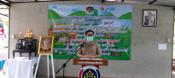 วันนี้(22 มี.ค.64) ศูนย์เรียนรู้เศรษฐกิจพอเพียงชุมชน (เชิงเกษตร) บ้านหนองแกเจริญ หมู่ที่ ๘ ตำบลสระยายโสม อำเภออู่ทอง จังหวัดสุพรรณบุรี นายนพฤทธิ์ ศิริโกศล รองผู้ว่าราชการจังหวัดสุพรรณบุรี เป็นประธานเปิดโครงการโครงการพัฒนาหมู่บ้านเศรษฐกิจพอเพียง ประจำปีงบประมาณ พ.ศ. ๒๕๒๔หลักสูตรเพิ่มทักษะระยะสั้นการพัฒนากสิกรรมสูระบบเศรษฐกิจพอเพียง รูปแบบ โคก หนอง นา โมเดลรุ่นที่ ๓ ระหว่างวันที่ ๒๒ – ๒๖ มีนาคม ๒๕๖๔